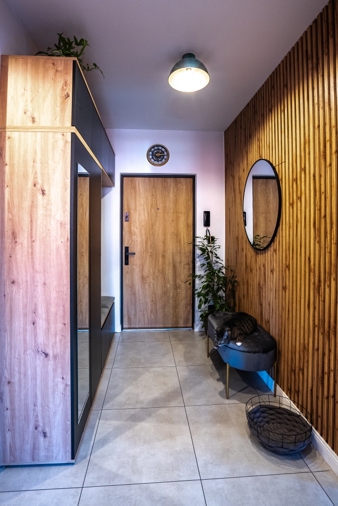Układ mieszkania został zaprojektowany z myślą o wygodzie i funkcjonalności – przestrzeń jest dobrze wykorzystana, a pomieszczenia są ustawne i komfortowe w codziennym użytkowaniu. Mieszkanie jest również bardzo dobrze doświetlone naturalnym światłem, co dodatkowo podkreśla jego przestronność i przyjemny charakter.