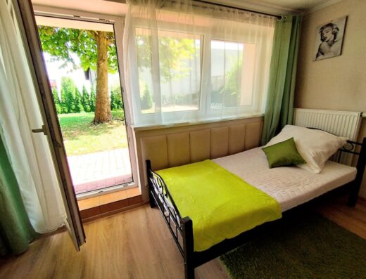 The apartment is located in a green part of Kraków, close to parks and recreational spaces. The entry to Wolski Forest is only 500 meters from the gate. This quiet residential neighborhood has good infrastructure: public transport, sports facilities, restaurants, schools, shops, and services. The closest bus stop is within 5 minutes walking distance from the gate.
