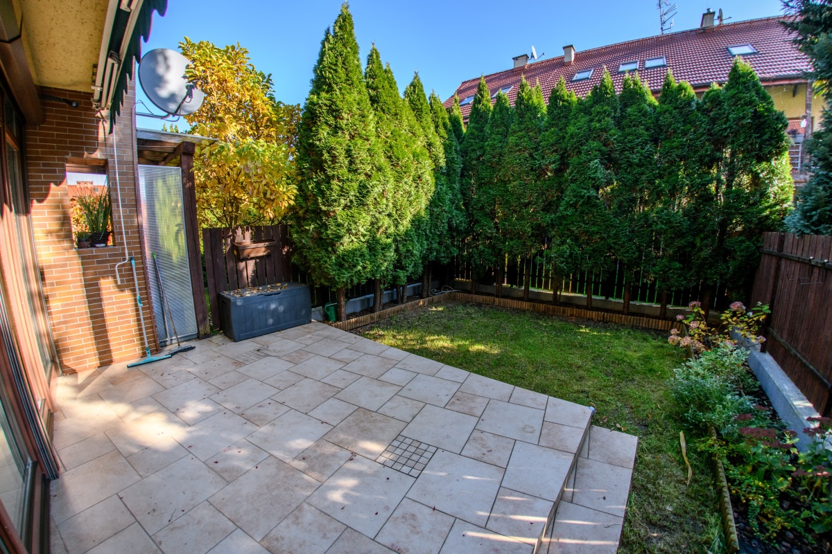 A spacious, private parking space is available in the underground garage. There is also a private garden with a terrace and a closed storage space in the basement.