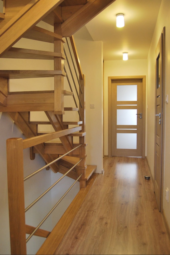 – Ogrzewanie podłogowe na powierzchni całego parteru oraz w łazience na pierwszym piętrze. W pozostałych pomieszczeniach grzejniki.