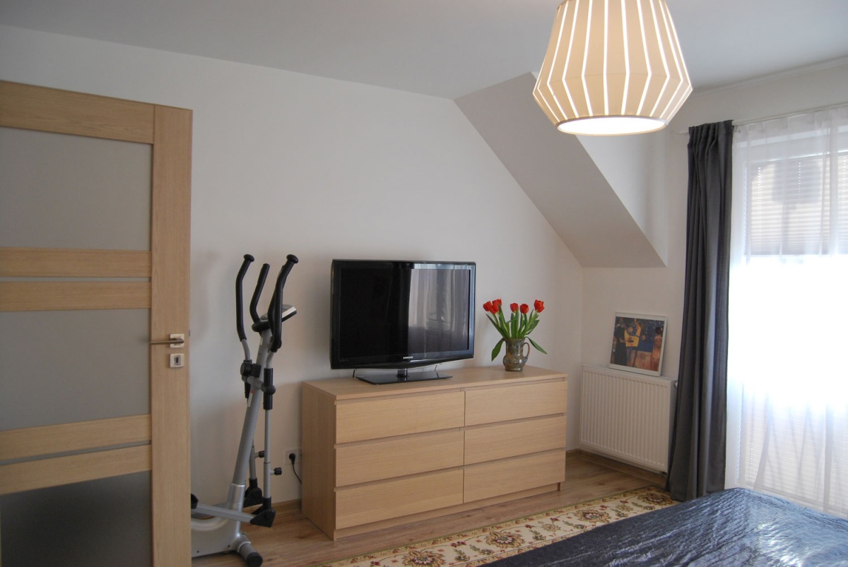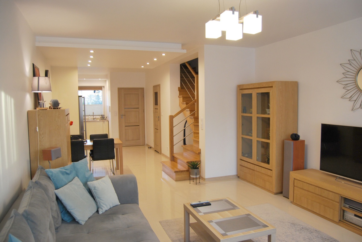 Segment jest przestronny, bardzo zadbany w bardzo dobrym stanie technicznym. Gotowy do wprowadzenia się. W kuchni pozostaje zabudowa meblowa. Zostają też szafy wnękowe w sypialni, w przedpokoju oraz na poddaszu. Drzwi pełne, schody dębowe wysokiej jakości.