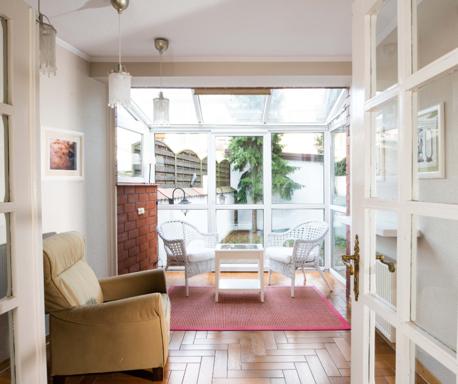 Dom słoneczny, z dużą ilością okien.