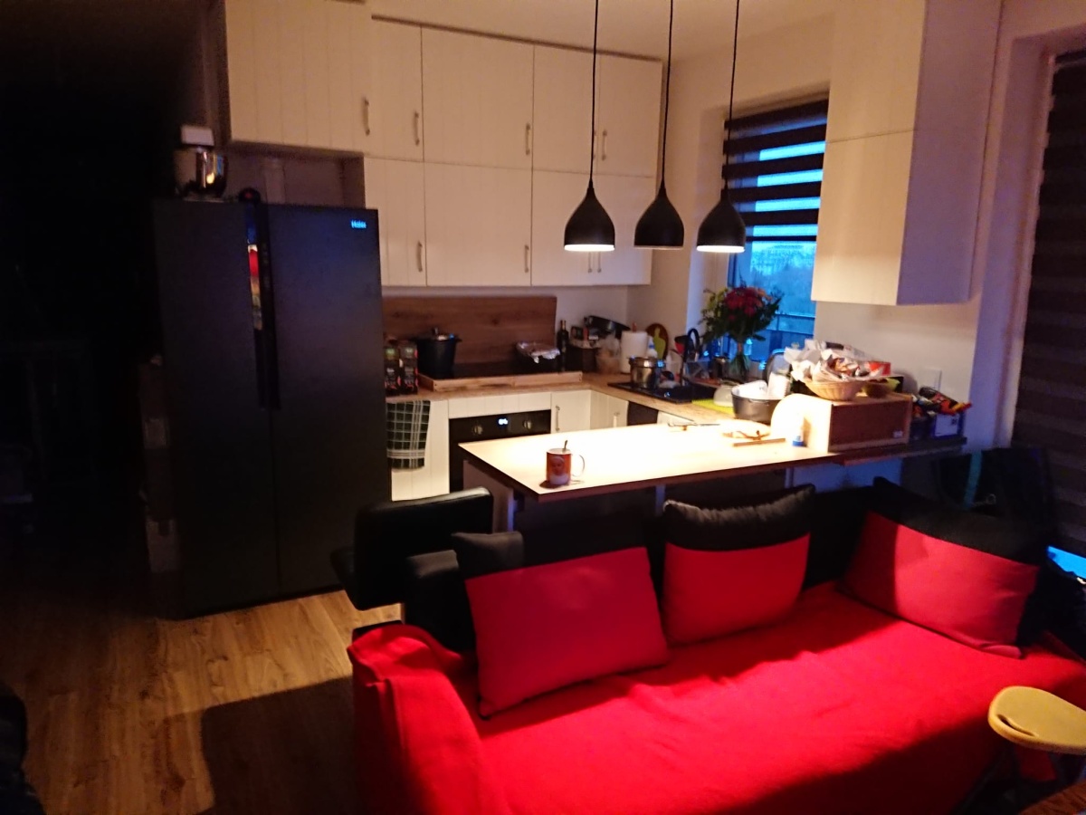 Osiedle zamknięte monitorowane, 100 m do autobusu, 500 m do WKD, 1000 m do tramwaju. W pobliżu sklepy i bazar oraz pociąg. Blisko Centrum i lotnisko. Mieszkanie do odmalowania, na podłodze panele. Meble kuchenne ze śladami użytkowania.