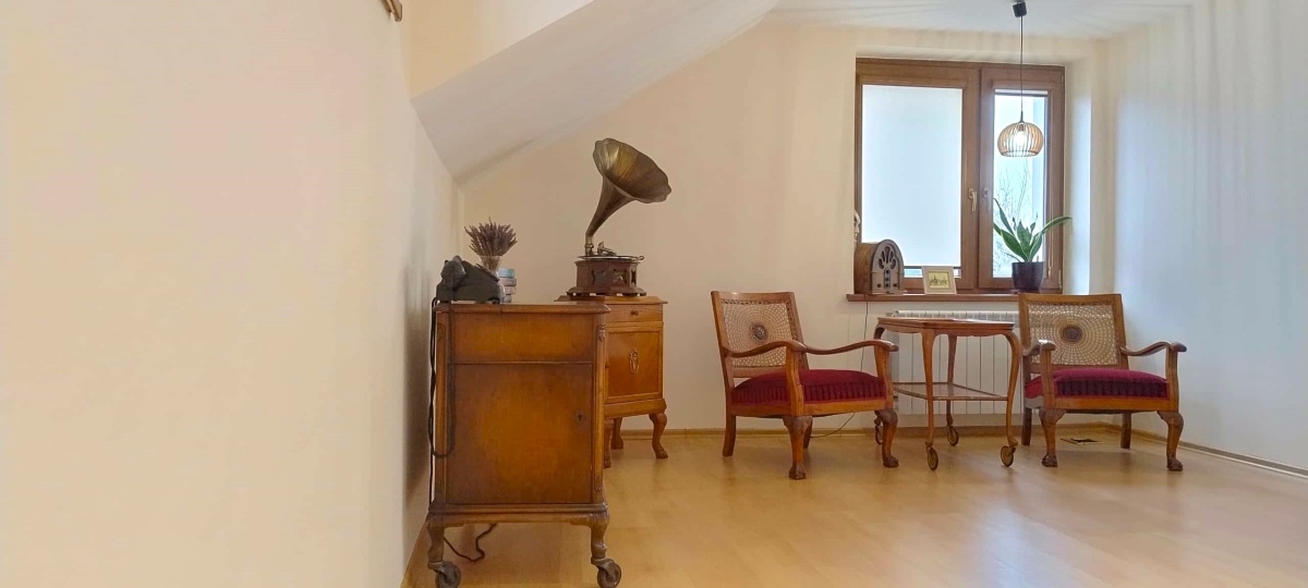 Zagospodarowana piwnica z kotłownią (ogrzewanie gazowe oraz piec na ekogroszek). Dwupoziomowy strych z możliwością adaptacji. Garaż w bryle budynku (dwustanowiskowy).
