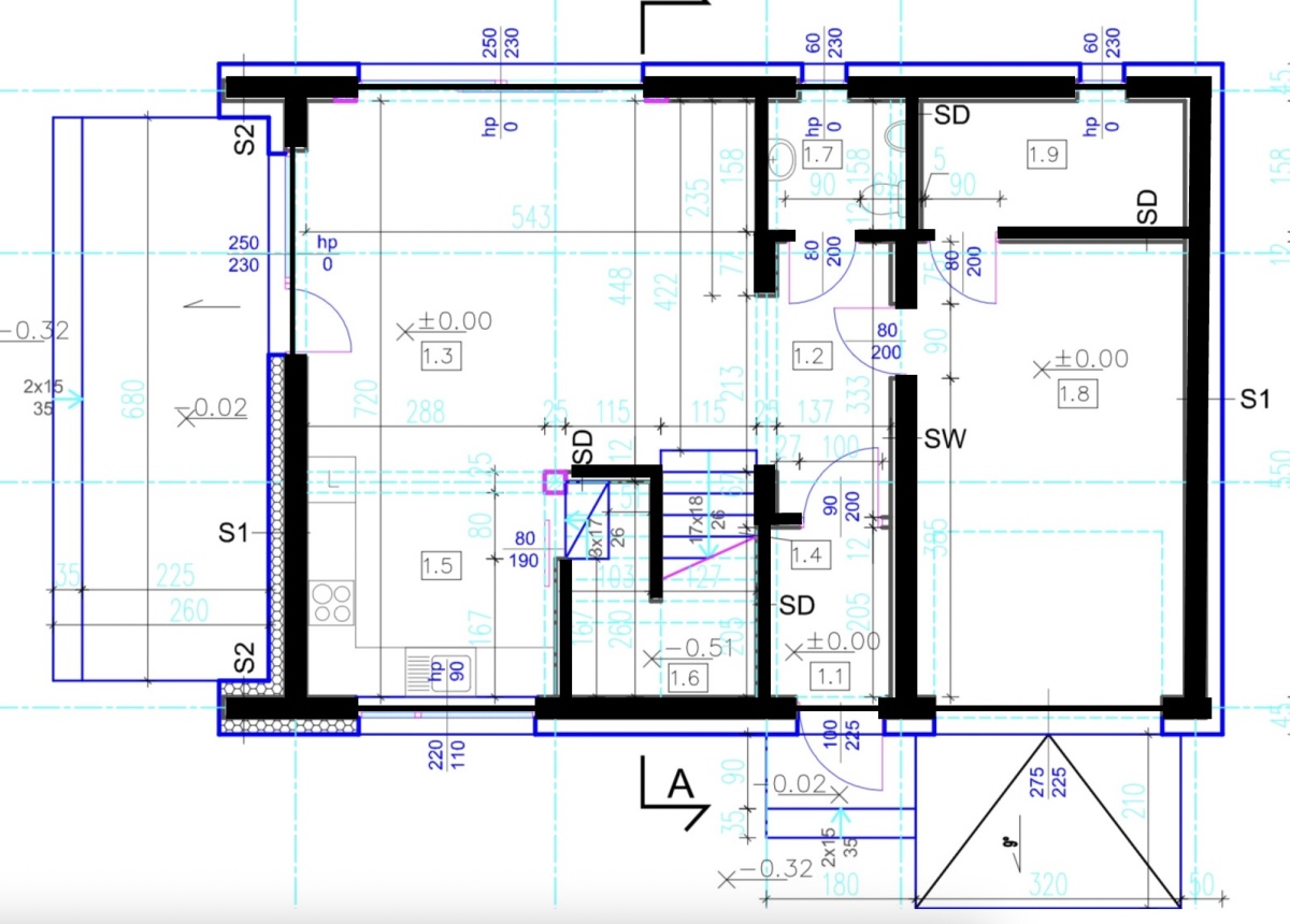 -garaż w bryle budynku 18,1 m2