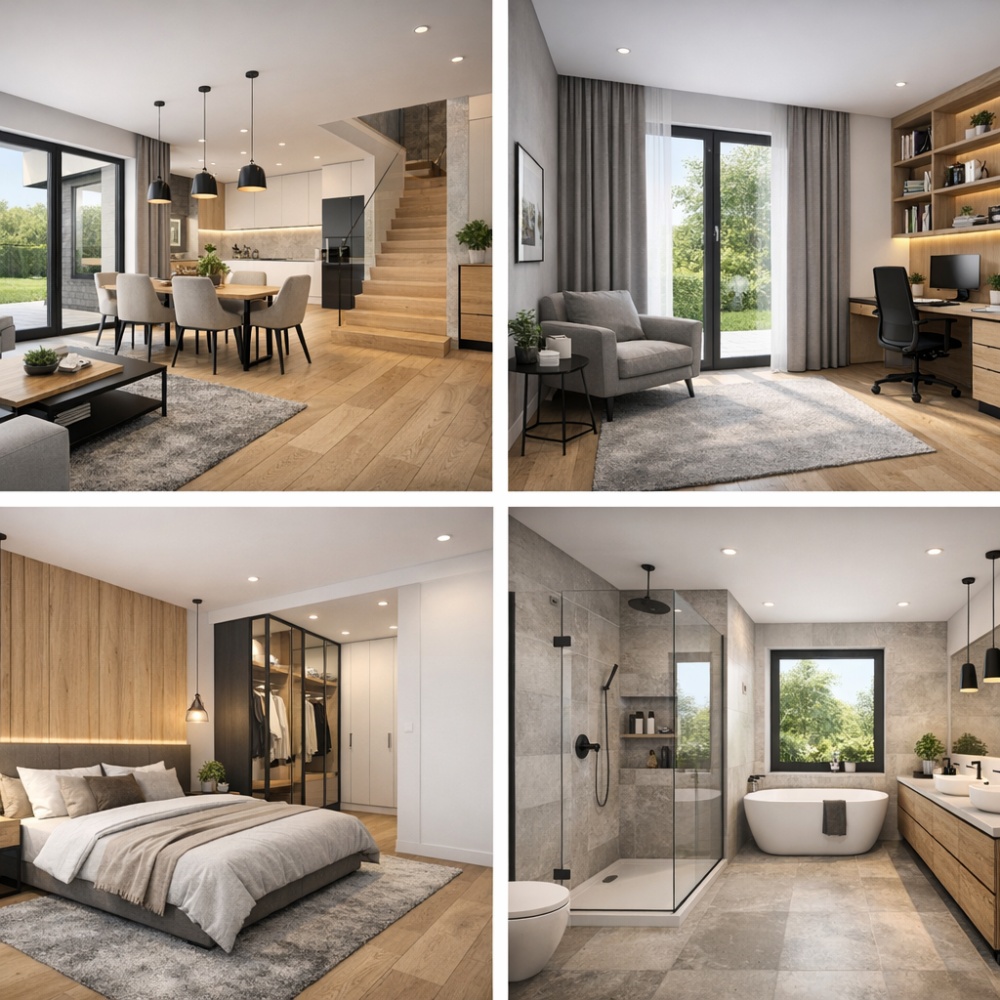 Idealna propozycja dla osób, które marzą o własnym domu w spokojnej i zielonej okolicy, z szybkim dojazdem do Krakowa i Proszowic.