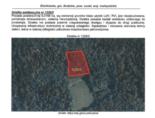 Przedmiotem sprzedaży jest udział w prawie własności nieruchomości gruntowej niezabudowanej położonej w miejscowości Kościelisko ul. Pod Blachówką (gmina Kościelisko, powiat tatrzański, województwo małopolskie).