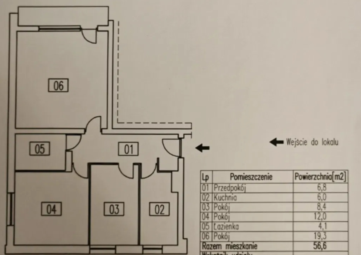 Mieszkanie 56,6 m² – 3 pokoje – do remontu – ul. Krasiczyńska 7, Warszawa