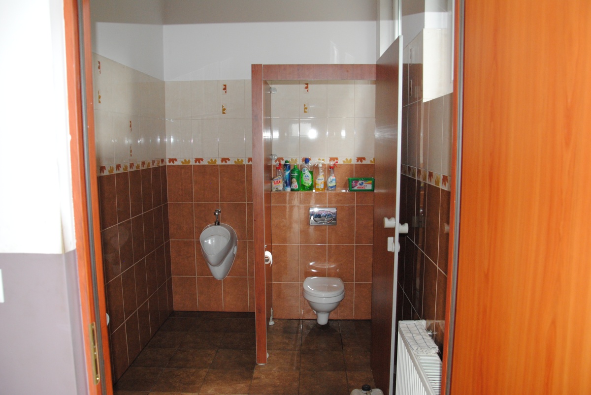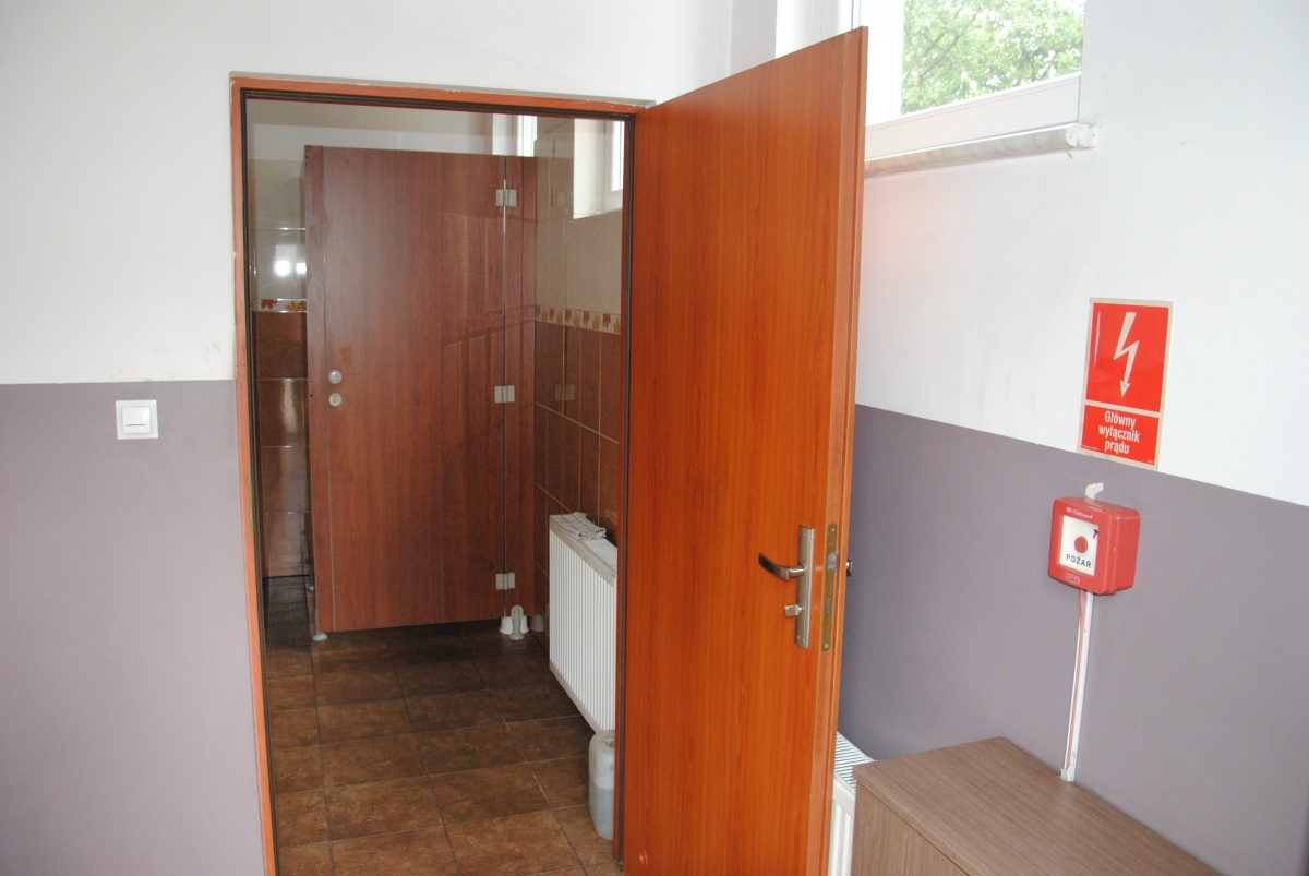 W budynku jest 5 łazienek z wc, 2 kuchnie oraz zaplecze socjalne przy biurze.