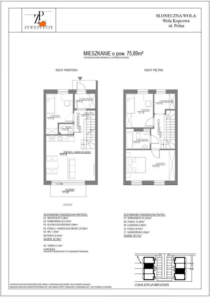 WOLA KOPCOWA – 2 poziomowe mieszkania z ogródkami