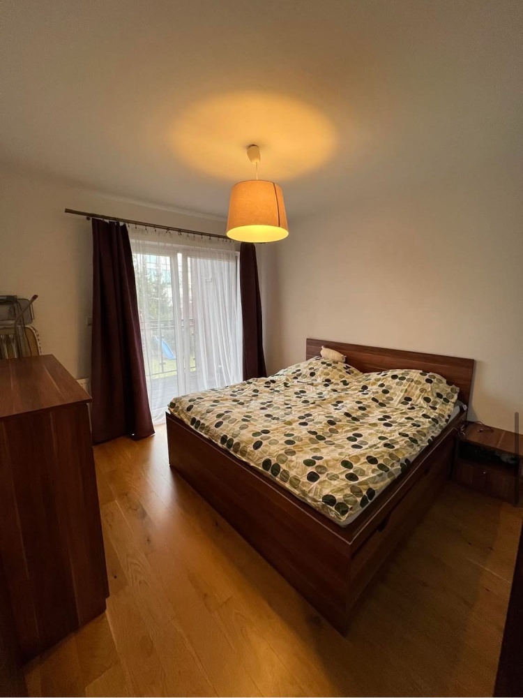 sypialnia 1 z sporą szafa , wyjście na balkon.
