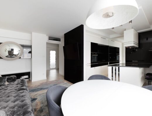 Salon i kuchnia tworzą jedną przestrzeń.